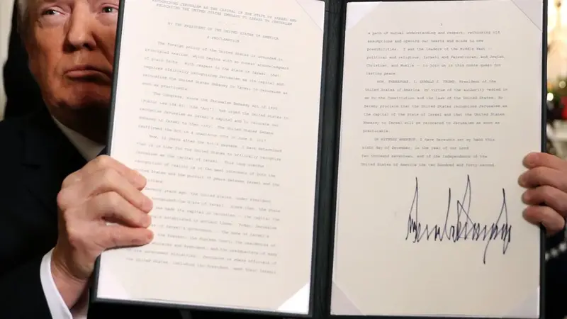 2017년 12월, 트럼프는 예루살렘을 이스라엘 수도로 공식 인정했습니다.