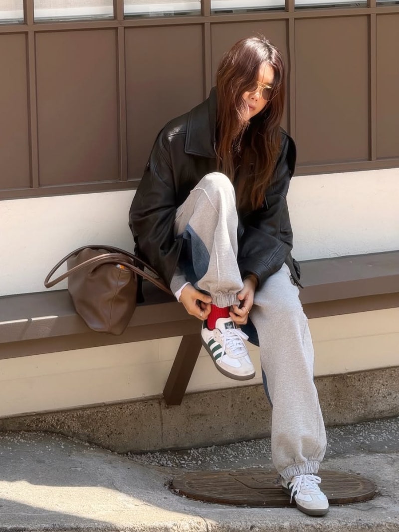 채정안이 가장 최근 신어서 화제가 된 삼바 ADV 컬리지에이트 그린은 정확히 이 트렌드 위에 놓여 있다. 앞코가 슬림하고, 플랫한 실루엣. 기존 삼바 OG보다 더 날렵한 쉐입. 볼드 스니커즈 피로감이 쌓이는 요즘, 이 실루엣이 다시 주목받는 이유가 있다는 게 화제가 된 포스팅의 핵심 메시지였다.